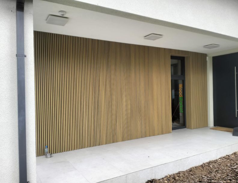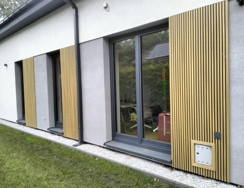 Realizacja elewacji z deską kompozytową Gardin Deco Black Wall w kolorze OAK - deskę kupisz w naszym sklepie https://www.sklep.woodmarket.pl/gardin-deco-wall-black-back-gh040-25x160mm-x1mb-deska-elewacyjna-kompozytowa