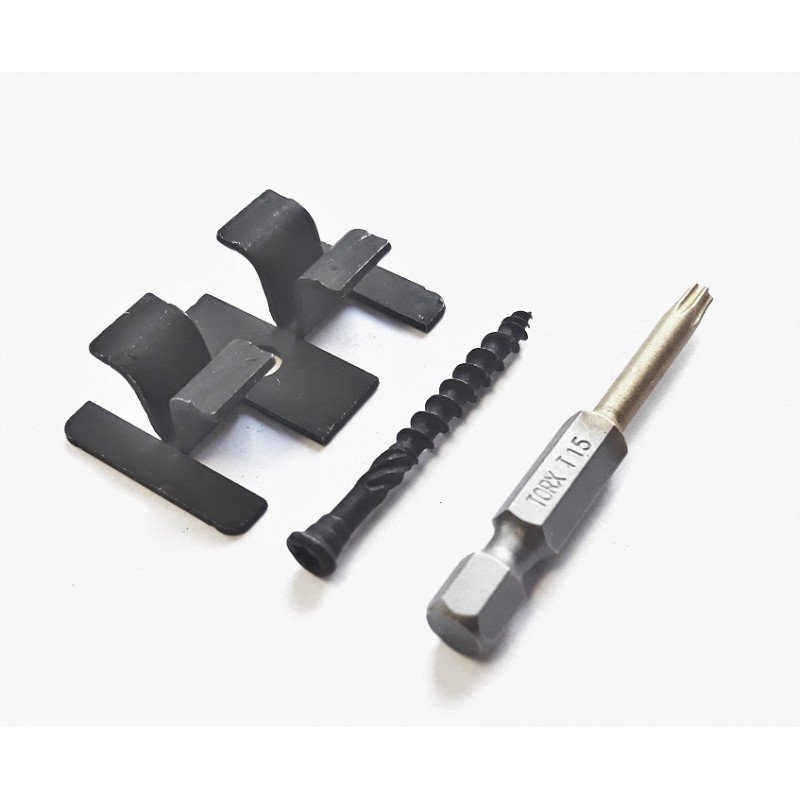 Specjalnie zaprojektowany klip plastikowy do montażu deski tarasowej z thermo jesionu ( z wyprofilowanym wcięciem w boku deski) .Średnie zużycie to ok 22-24szt / 1m2 tarasu. Do klipa dołączony jest wkręt ze stali nierdzewnej . Oferta dotyczy 1szt.