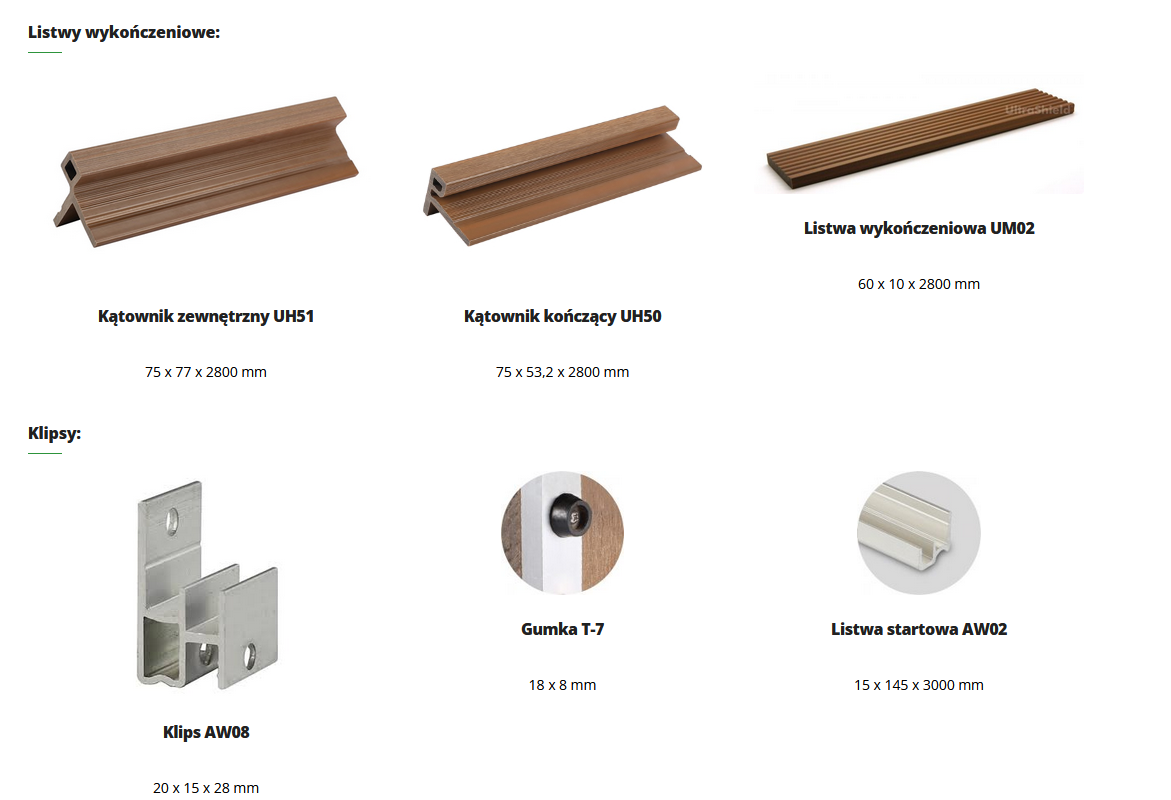 Wyprofilowana listwa płaska będzie pasować do desek kompozytowych ULTRASHIELD - wykonana jest z tej samej mieszanki co deski elewacyjne i tarasowe, posiadają szczotkowaną strukturę.