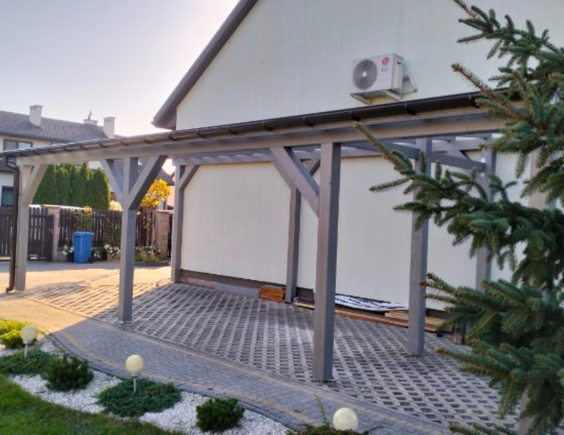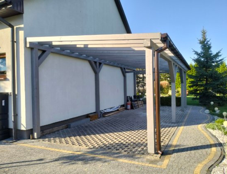 Wiata garażowa / samochodowa wykonana z drewna konstrukcyjnego BSH , KVH , C24 z pokryciem dachowym np z poliwęglanu - indywidualne podejście do każdego zamówienia!